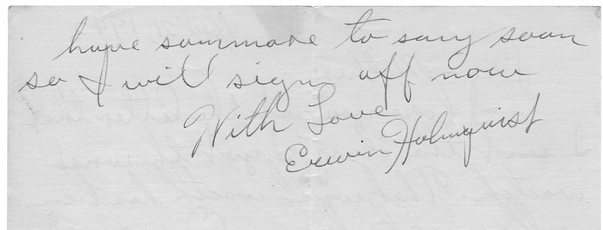 I have had a cold the last few days. Otherwise I feel all right. I hope everyone at home is. I wrote a letter to Ruth. I hope I get an answer soon. I can’t think of anything else to say. I suppose I will have some more to say soon so I will sign off now.