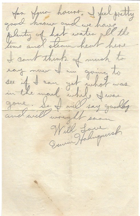 I can’t think of much to say now. I am going to see if I can get what was in the mail while I was gone. So I will say goodby and will write soon.