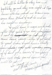 If I have to come back to the station Sunday morning, it will be better to stay here and probably go and stay overnight at Olga’s house. She has asked me to come over some time which I can’t do and see her except on Sunday.