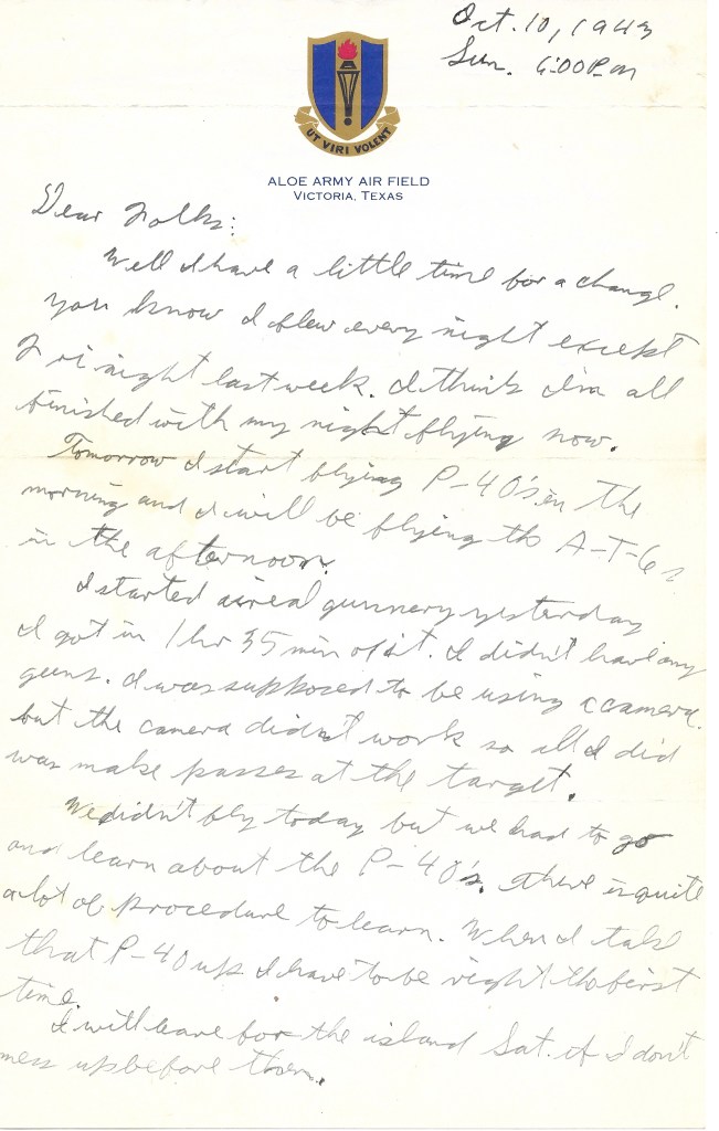 We didn’t fly today but we had to go and learn about P-40s. There is quite a lot of procedures to learn. When I take that P-40 up I have to be right the first time.