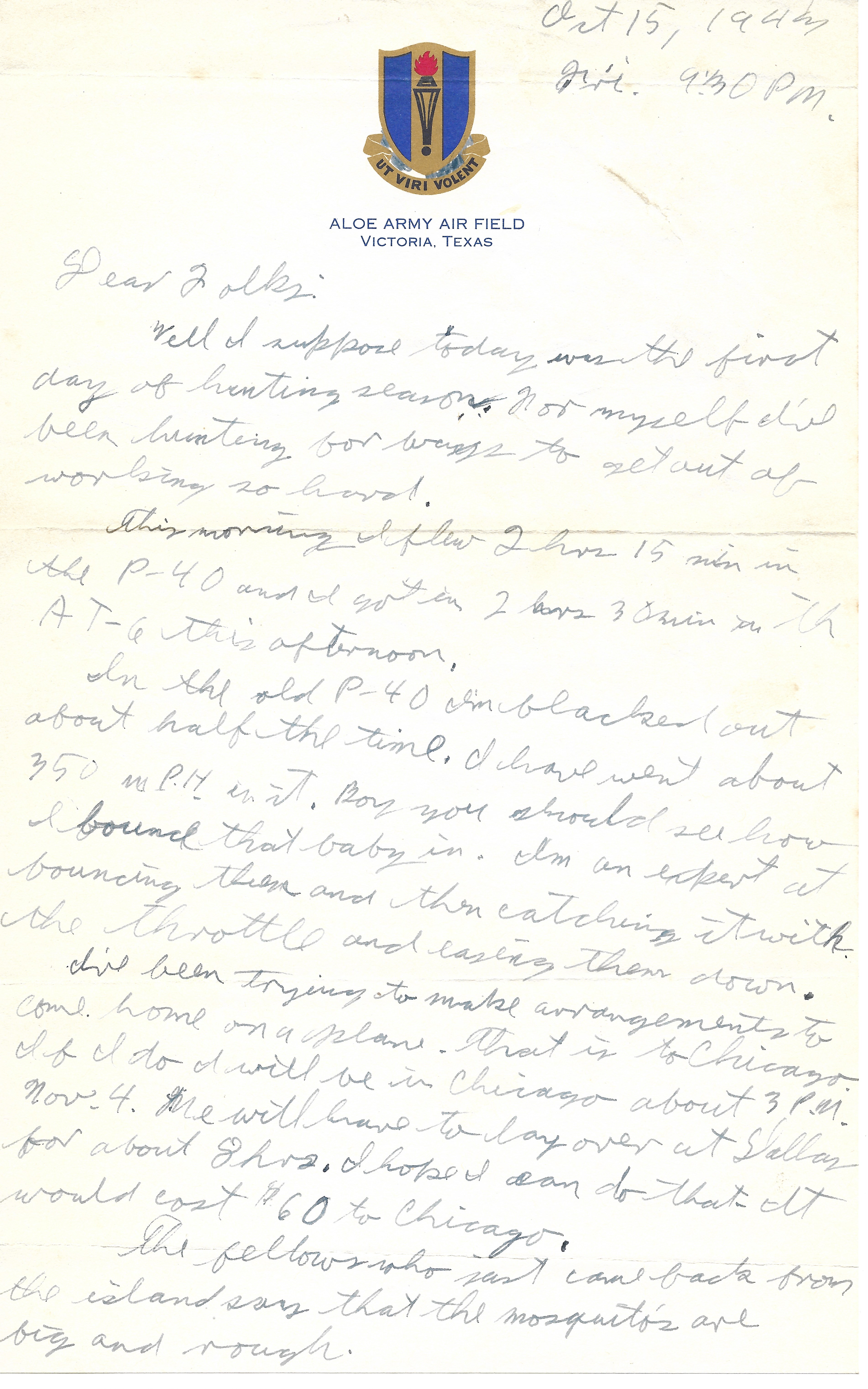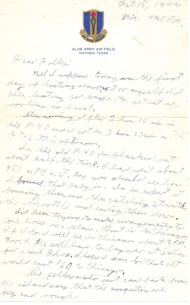 In the old P-40 I’m blacked out about half the time. I have went about 350 M.P.H. in it. Boy you should see how I bounce that baby in. I’m an expert at bouncing them and then catching it with the throttle and easing them down.