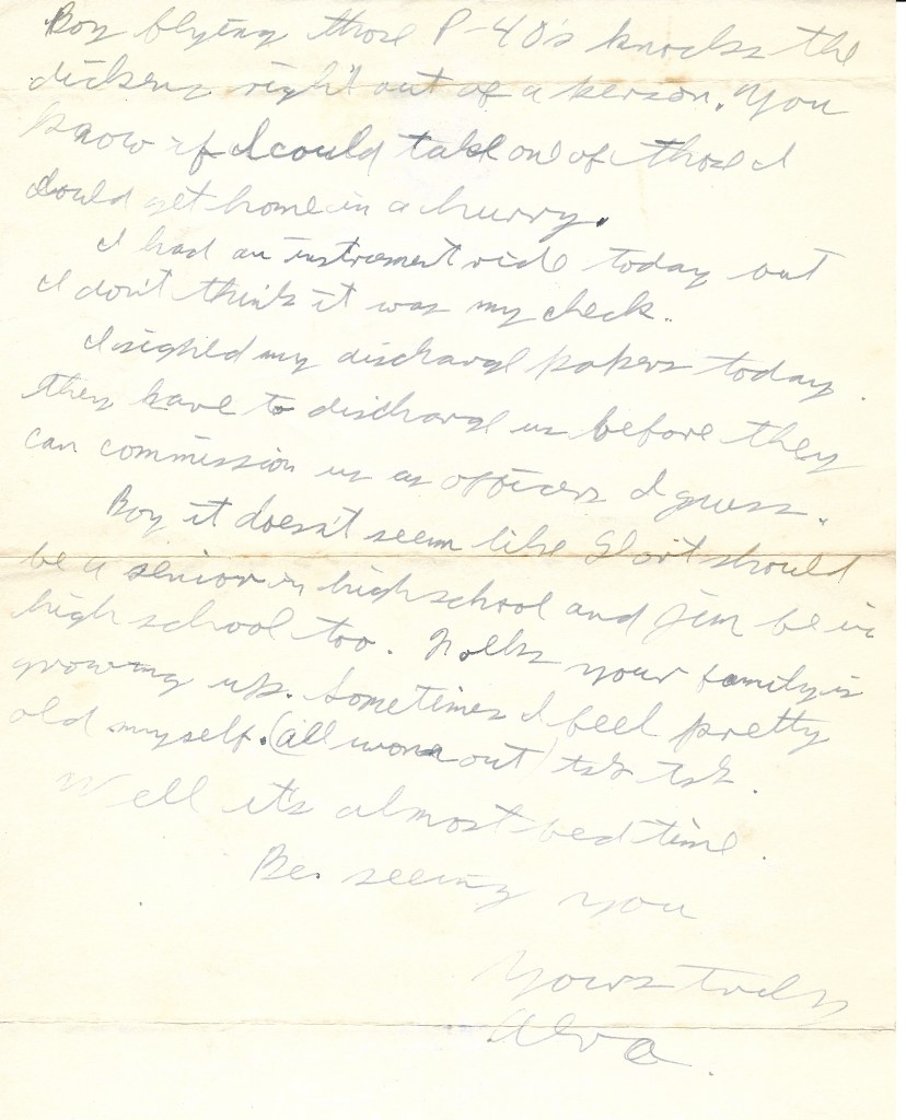 Boy flying those P-40s knocks the dickens right out of a person. You know if I could take one of those I could get home in a hurry.