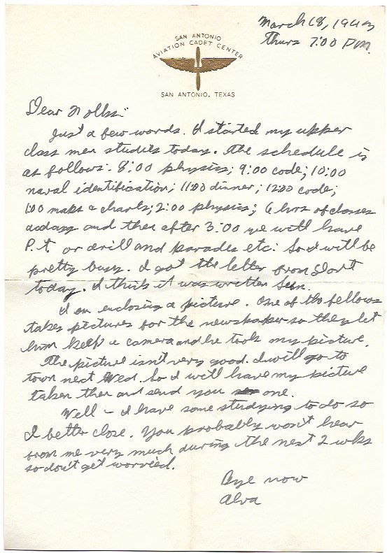 Well I have some studying to do so I better close. You probably won’t hear from me very much during the next 2 wks. so don’t get worried.