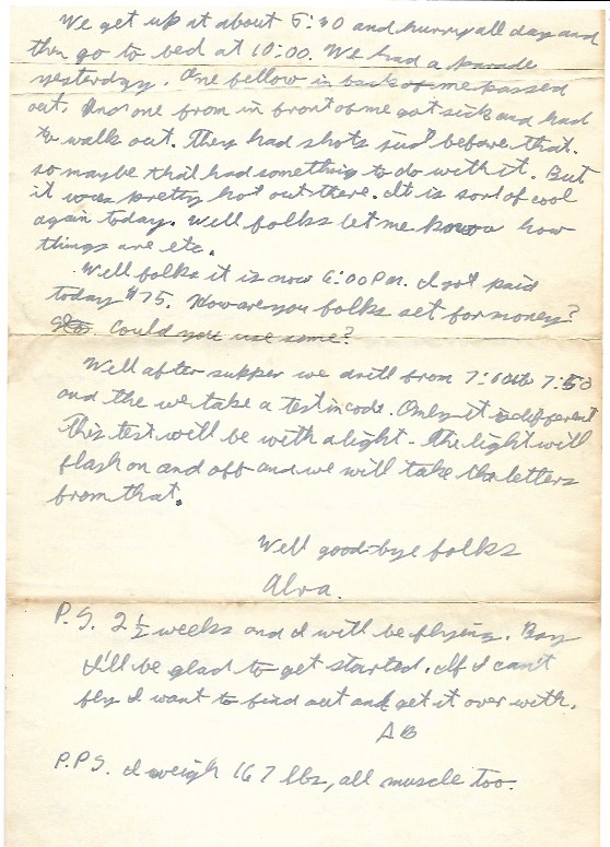 P.S. 2 1/2 weeks and I will be flying. Boy I’ll be glad to get started. If I can’t fly I want to find out and get it over with.