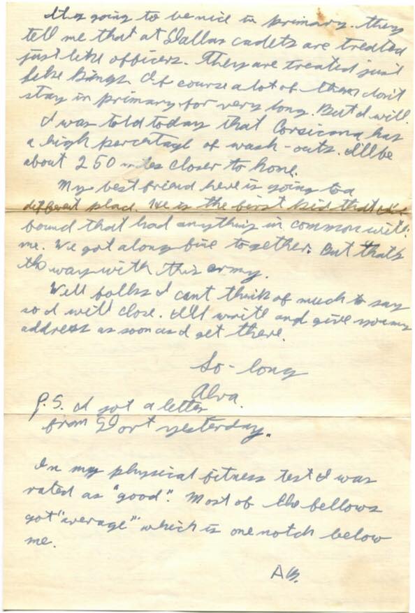 It is going to be nice in primary. They tell me that at Dallas cadets are treated just like officers. They are treated just like kings. Of course a lot of them don’t stay in primary for very long. But I will.