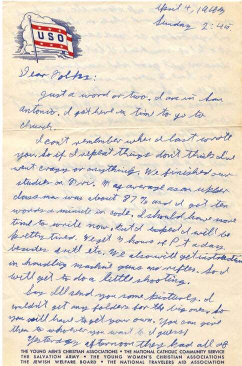 I can’t remember when I last wrote you. So if I repeat things don’t think I’ve went crazy or anything. We finished our studies on Fri. My average as an upper class man was about 87% and I got ten words a minute in code. I should have more time to write now. But I expect I will be pretty tired. We get 3 hours of P.T. a day besides drill etc. We also will get instruction in handling musket guns and rifles. So I will get to do a little shooting.