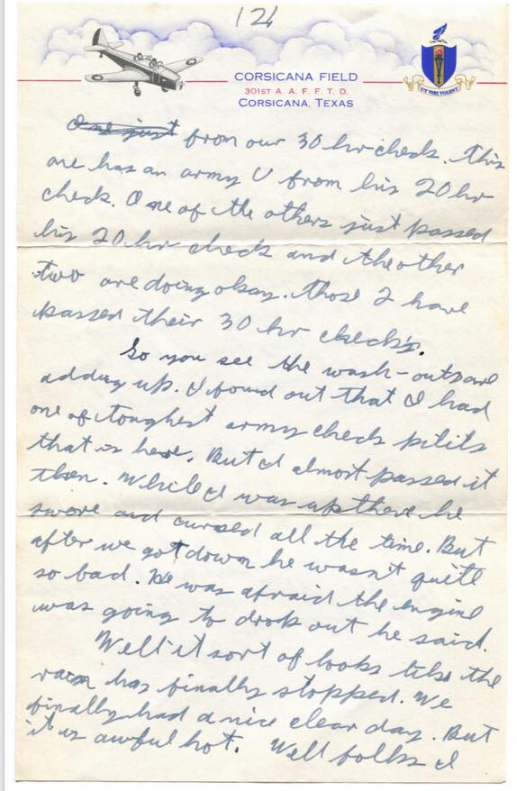 So you can see the wash-outs are adding up. I found out that I had one of the toughest army check pilots that are here. But I almost passed it then. While I was up there he swore and cursed all the time. But after we got down he wasn’t quite so bad. He was afraid the engine was going to drop out he said.