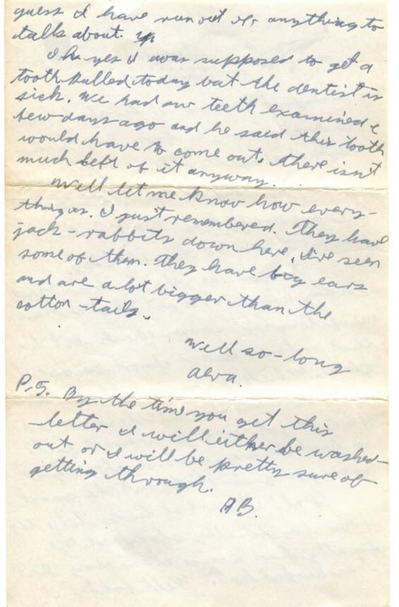 P.S. By the time you get this letter I will either be washed out or I will be pretty sure of getting through.