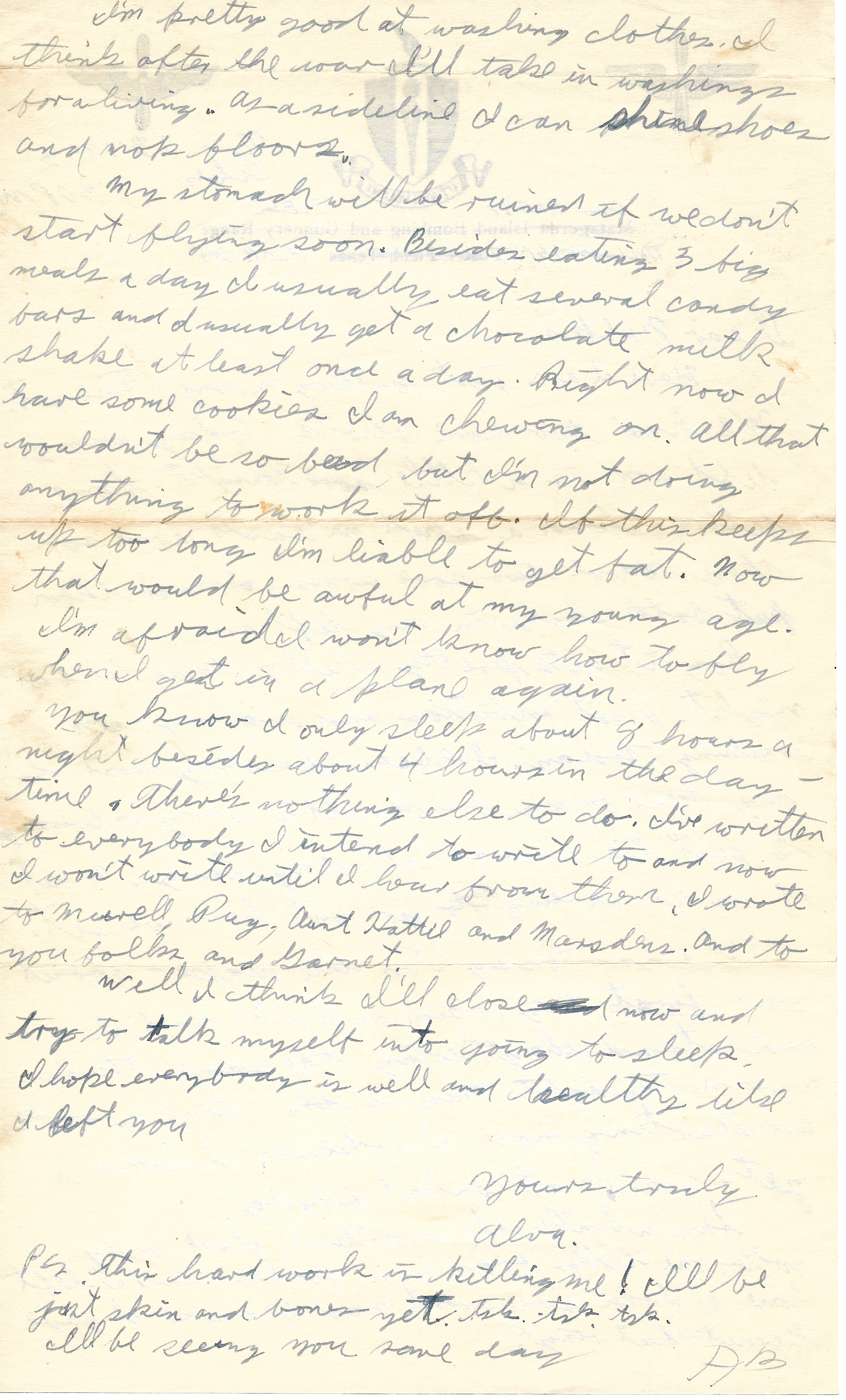 Well I think I’ll close now and try to talk myself into going to sleep. I hope everybody is well and healthy like I left you.