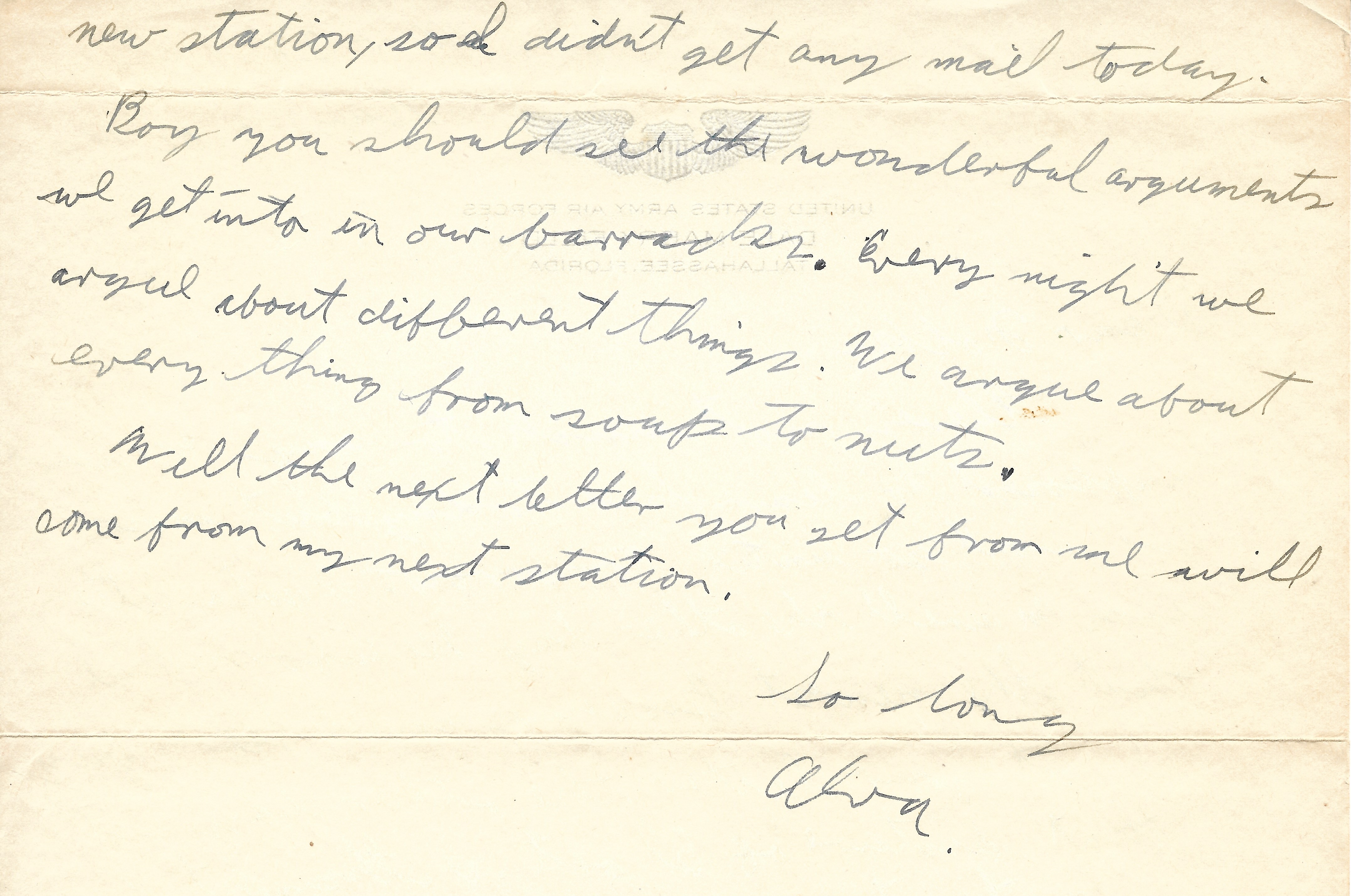 Boy you should see the wonderful arguments we get into in our barracks. Every night we argue about different things. We argue about everything from soup to nuts.
