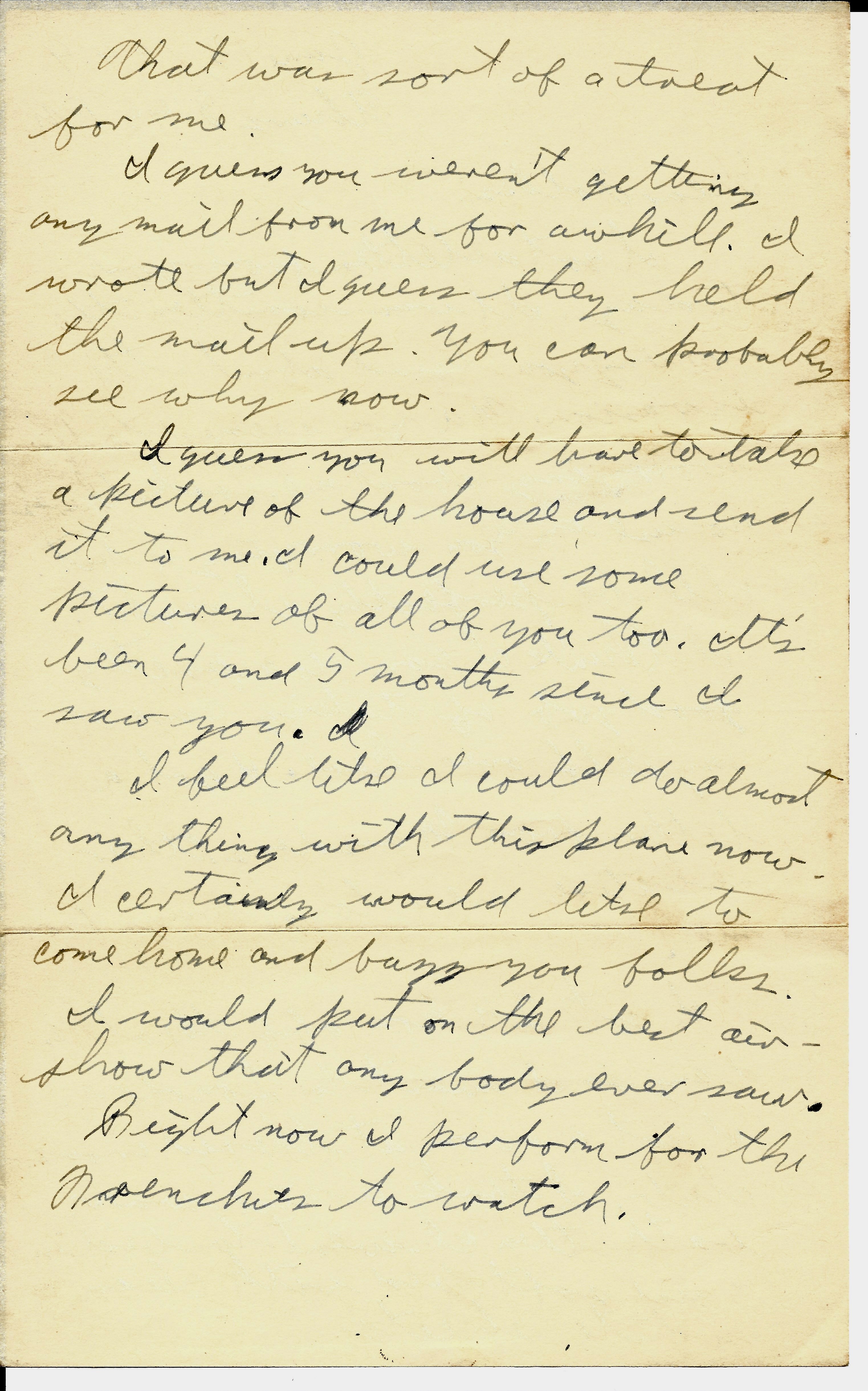 I feel like I could do about anything with this plane now. I certainly would like to come home and buzz you folks. I would put on the best air show that anybody ever saw. Right now I perform for the Frenchies to watch.