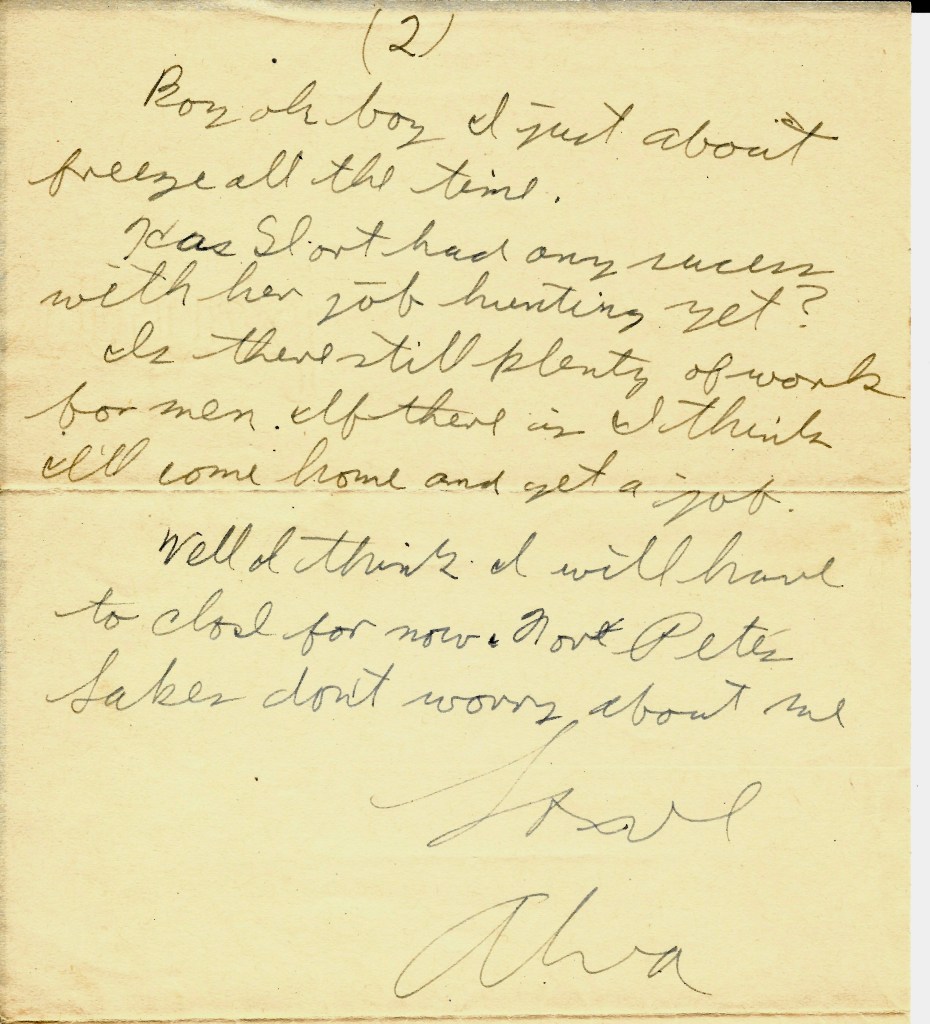 Well I think I will have to close for now. For Pete’s sakes, don’t worry about me.