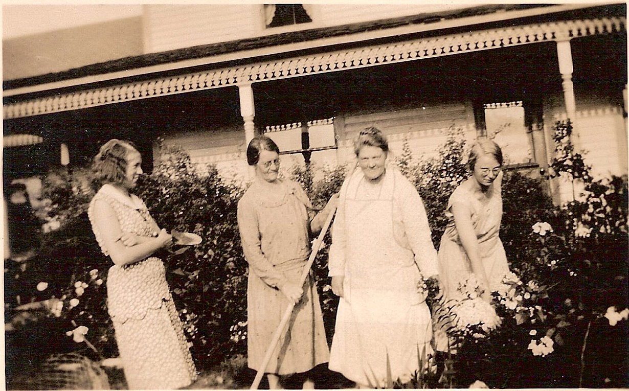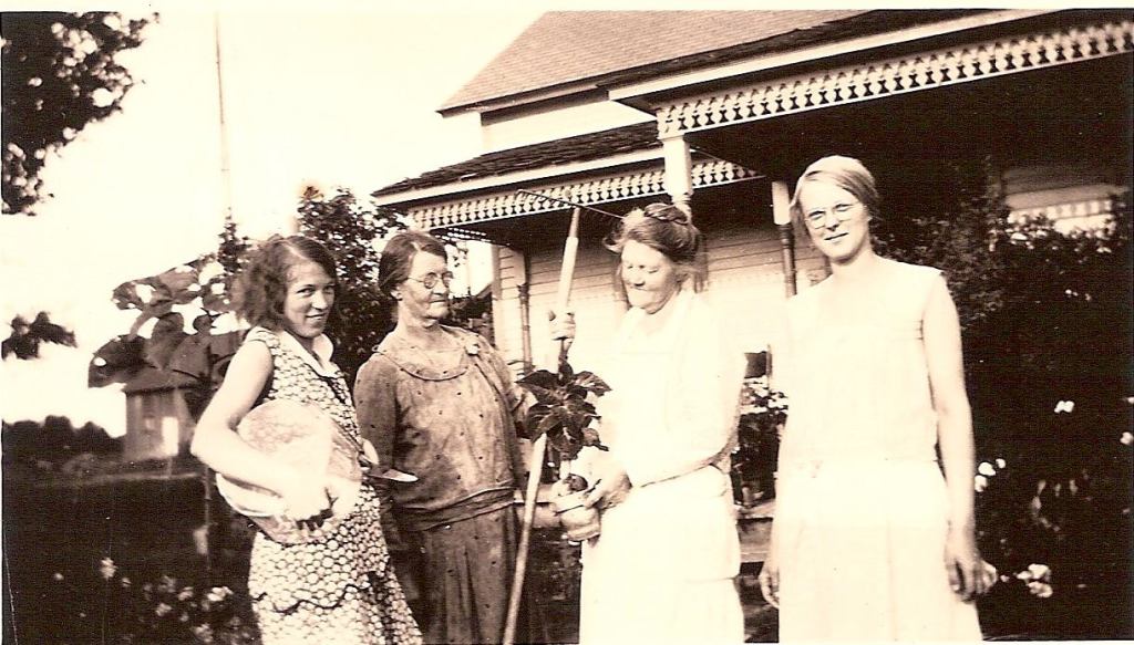 In these photos are (left-right) Helen Samuelson (born 1908), Hannah Holmquist, Lena Samuelson, and Florence Samuelson (born 1907). Hannah was Elmer Holmquist’s mother. Lena was Elmer’s aunt (Hannah’s sister). And Helen and Florence were Lena’s daughters so they were Elmer’s cousins. Hannah and Lena lived to be 86. Florence lived to 97 and Helen to 103!