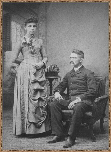 Martin and Anna Telder, parents of Joanna Telder Holmquist. Martin was born in the Netherlands in 1865 and came to the United States when he was 1 1/2 years old. Anna’s full name was Hendrina Hubrina Kornoelje, and she was born in 1868 in Grand Rapids. They were married in 1889. I wonder if this was taken on their wedding day?