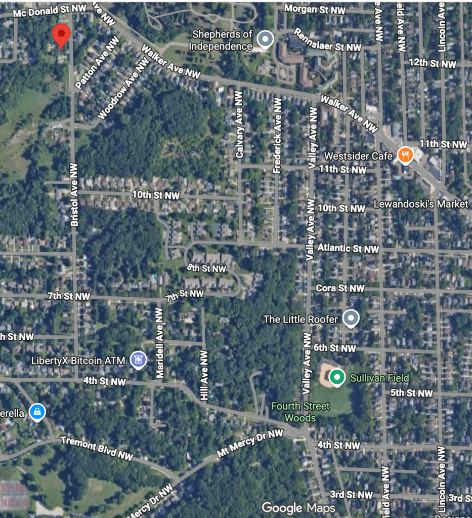 This map shows the northwest neighborhood where the Besseys lived in the 1920s and early 30s. Calvary off Walker is the first home they rented and where they lived when Dorothy was born. It was on the corner of Calvary and 10th. The home included 8 acres of woods behind it. The Marsdens lived on Bristol presumably by 10th. That is the home that burned down in 1930. Then they rented a home on Lincoln which is on the far right of the map. The home mentioned on page 8 of this history was located on Bristol “on a hill near the end that ran into McDonald.” The year was 1933. My Dad (Erwin Holmquist) and the future husband of Dorothy Bessey lived on Patton Ave the next street east of Bristol. In fact, Erwin and Dorothy’s first home was on the corner of Bristol and Woodrow. And our daughter bought her first home in 2012 on Walker between Woodrow and Calvary. Their house also backed up to the same wooded area as the house owned by my parents on Woodrow and the house my mom lived in her first few years on Calvary. One more street, Morgan at the top of the map is the house where my dad was born, the home his parents lived in with his maternal grandparents until they moved to Patton in 1928. My grandma. mom, Uncle Jim and Aunt Meredith would move to a house on McDonald in 1945 after the death of Clarence Bessey.