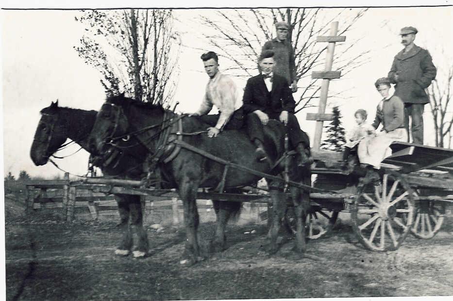 Peter Holmquist and family with horses and wagon Elmer Holmquist is in front. Peter Holmquist is standing in back. Sitting on wagon is most likely Hannah Holmquist and Ingrid. Two others possibly Randolph and Lawrence. Possible date 1916. Share this: Print (Opens in new window) Print Like Loading...