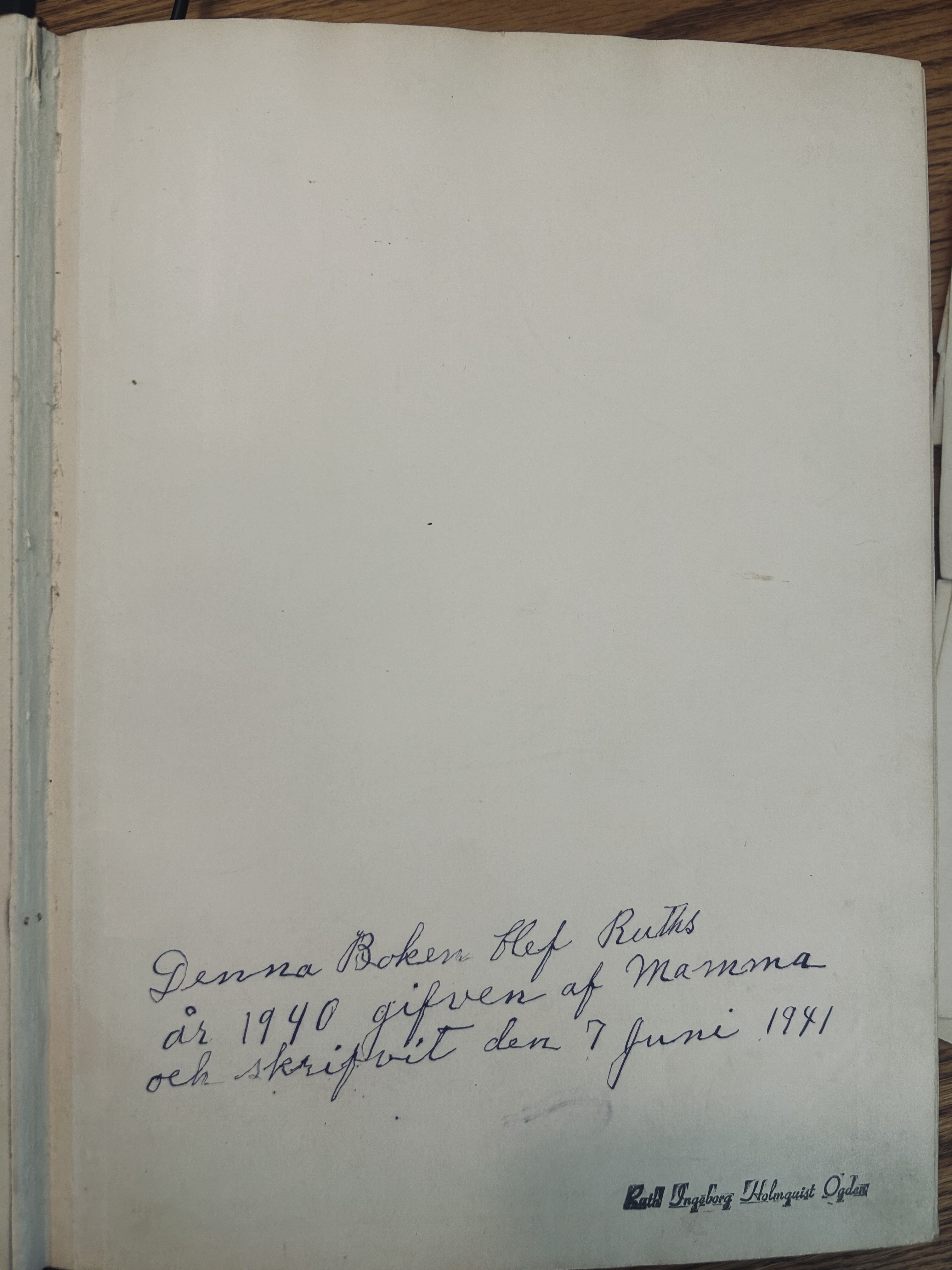 This book was given to Ruth in 1940 by her mother and written on 7 June 1941.
