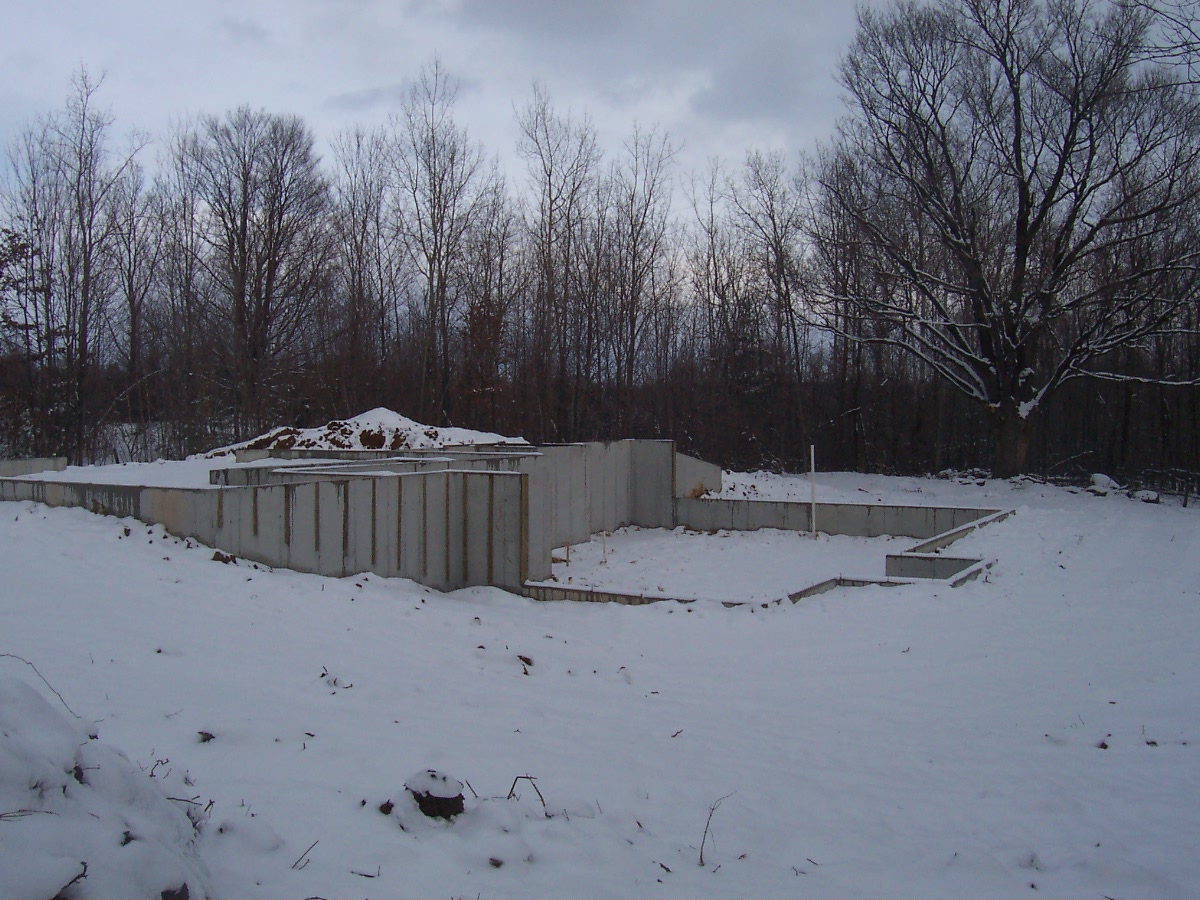 Flash forward 44 years after my parent’s foundation was laid to 2006. Go back and look at the last picture above and notice the large tree in the left back of the picture and then take a look at the large tree in the right back of this picture. On a cold day in January 2006, the foundation was poured on my new house being built directly behind my parents’ home.