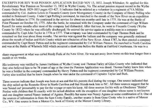 Also, The History of Mercer County (WV) states that Joseph was “reputed to have been a courier for George Washington during the Revolutionary War.”