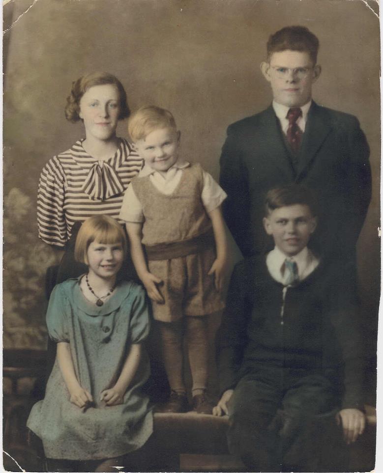 Alva Devere Bessey was born in Day Township, Montcalm County, Michigan on the 9th of February in the year 1921. His parents, Clarence and Ethel, had twin six year olds, Murell and Pearl. The family would be joined by three more children over the next 15 years, Dorothy, Jim, and Meredith. Here is a picture of the five oldest children taken around 1933 when Alva was 12.